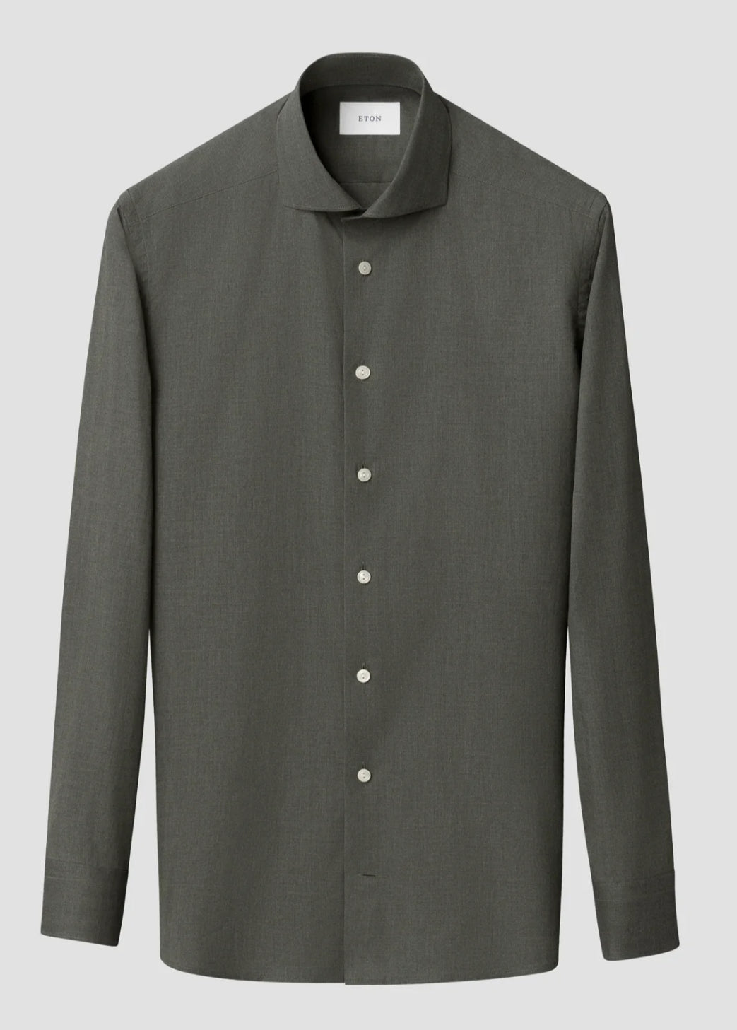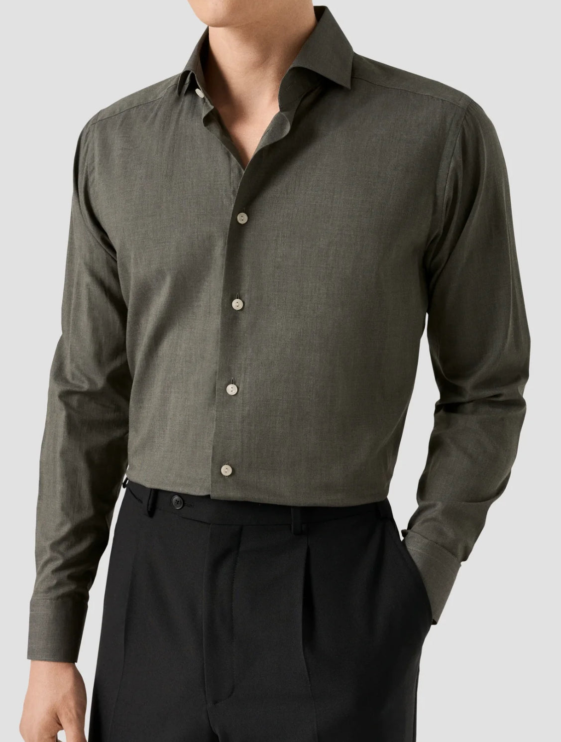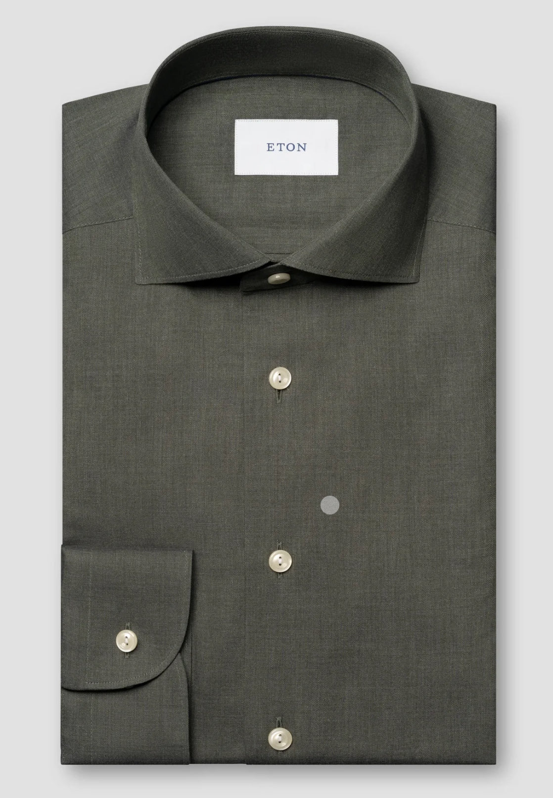 The Eton brushed flannel dress shirt is crafted from 100% cotton flannel, woven for a luxuriously soft hand-feel and refined texture. Naturally breathable and wrinkle-resistant, this premium shirt delivers both warmth and structure—ideal for sophisticated cold-weather dressing. Tonal buttons add a clean, elevated finish.
