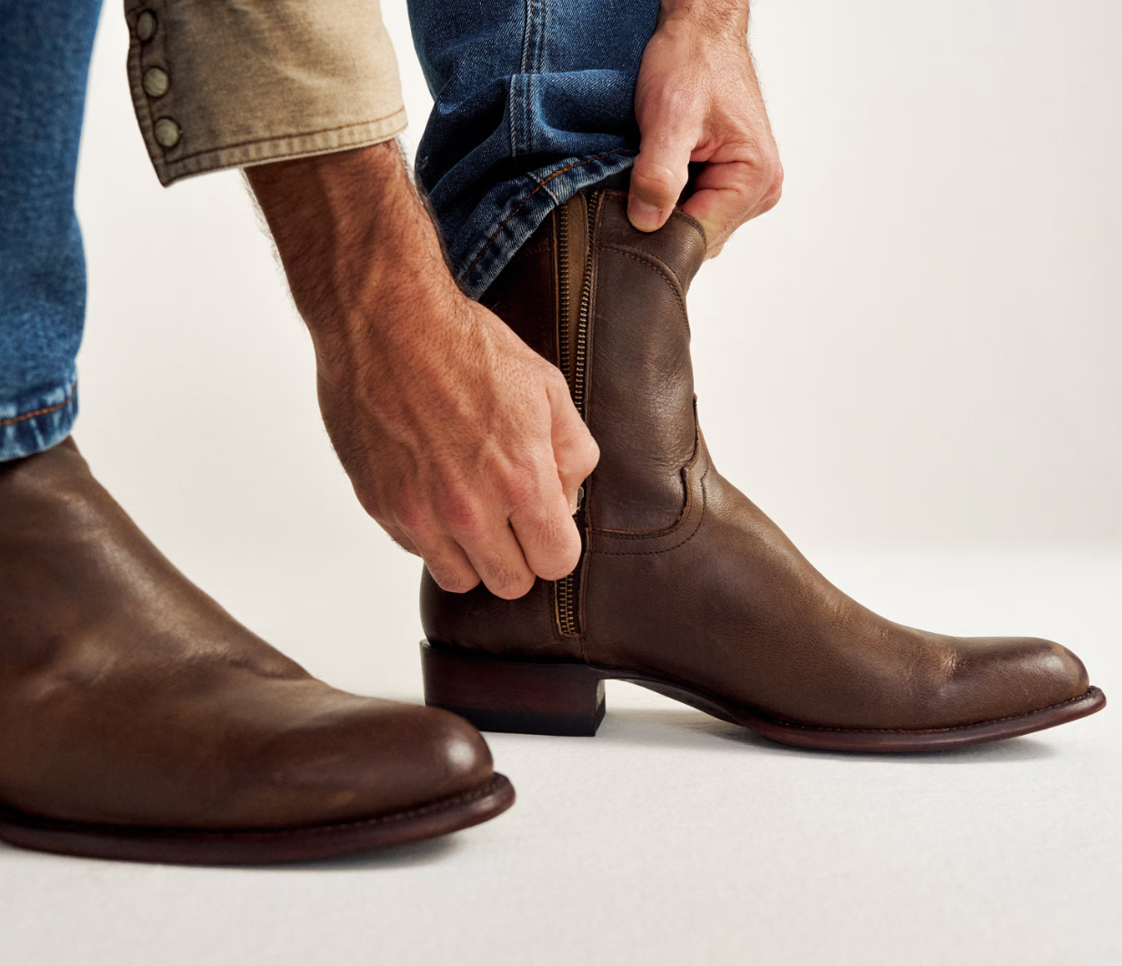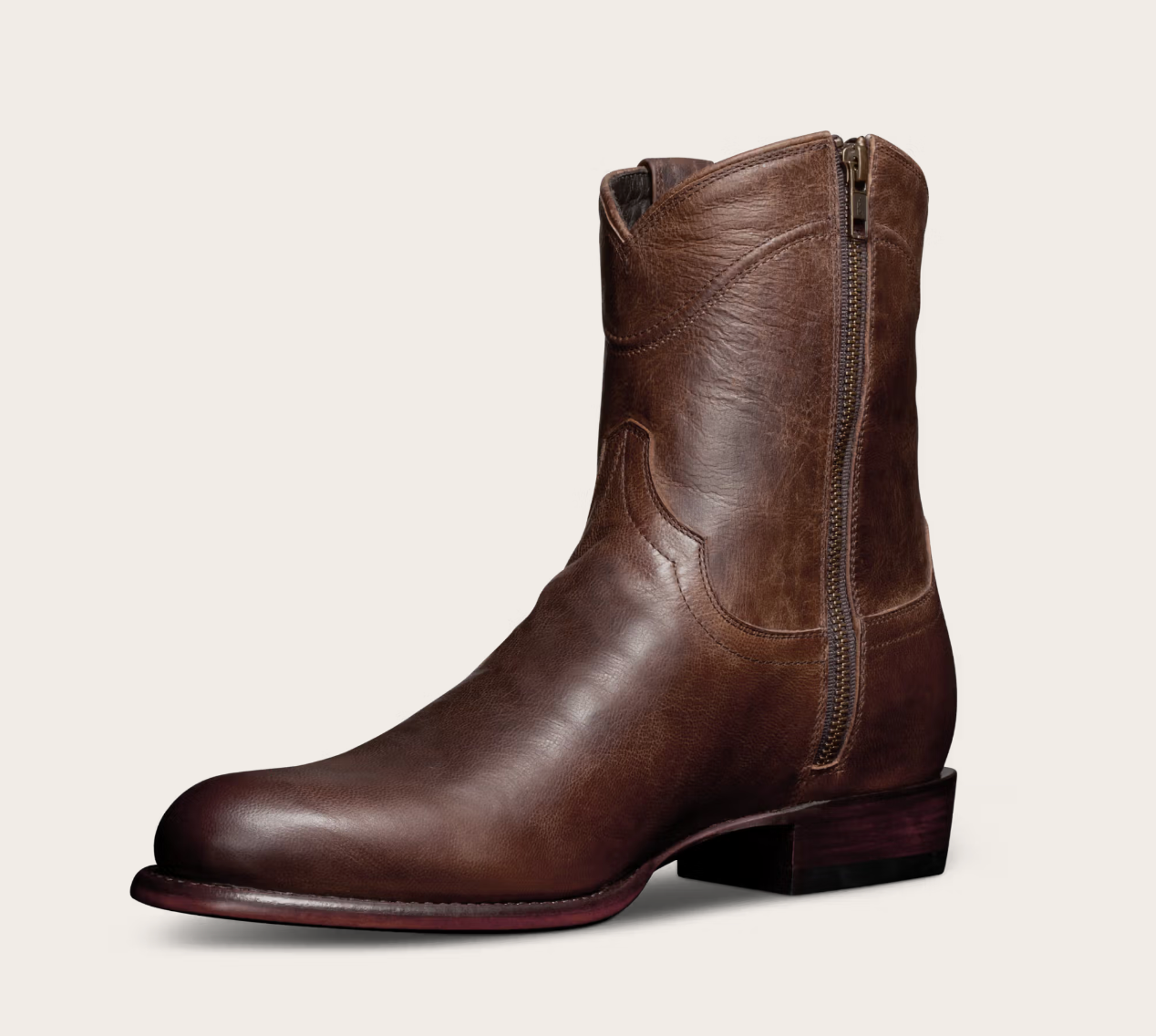 The Dean redefines the classic western boot with a sleek, contemporary edge. Designed for comfort, durability, and sophistication, its slim 8” shaft slides seamlessly under fitted jeans or pants, while a discreet side zipper offers easy wear without compromising authenticity. Every detail reflects refined craftsmanship — from the round toe silhouette to the stacked leather heel — making this boot as versatile as it is timeless.